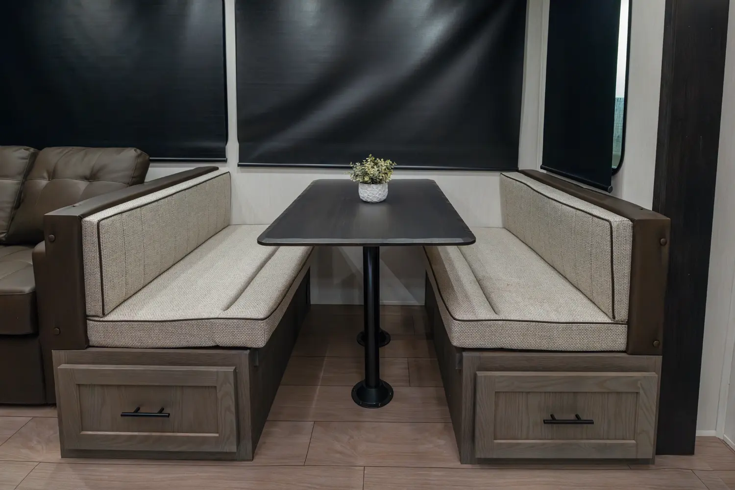 With two bedrooms and a loft, the Arctic Wolf 3750SUITE by Forest River is a great option for families with older children or adult guests! The rear features a 54x74 bed with a 60x80 loft bed overhead, ample wardrobe space and a half bathroom. Out in the island kitchen you'll find modern appliances like two 10 cu. ft. refrigerators, 30" microwave, oven and a dinette that converts into a bed. In the primary suite you'll find a full bathroom, sun bench, king size bed and lots of wardrobe space.