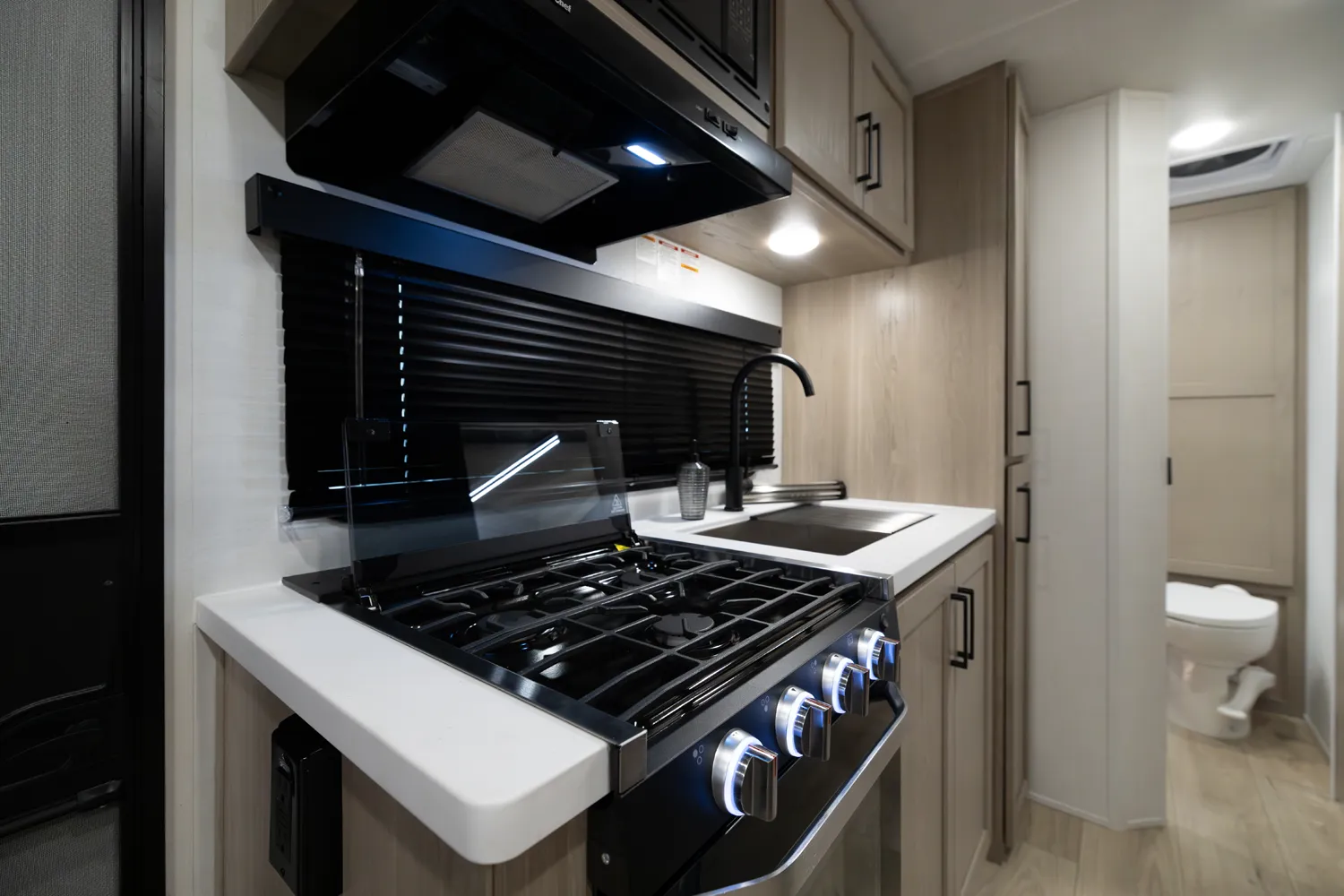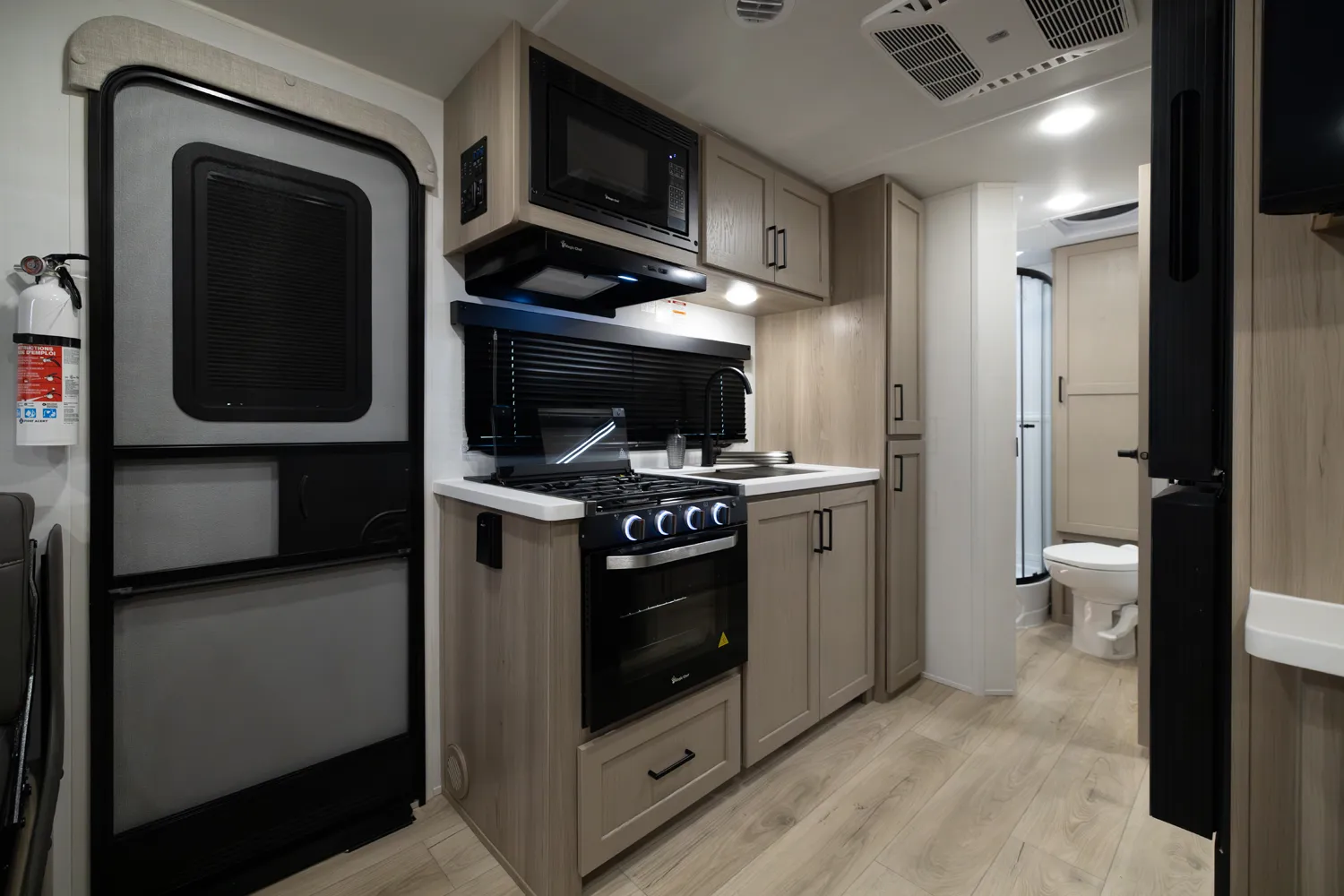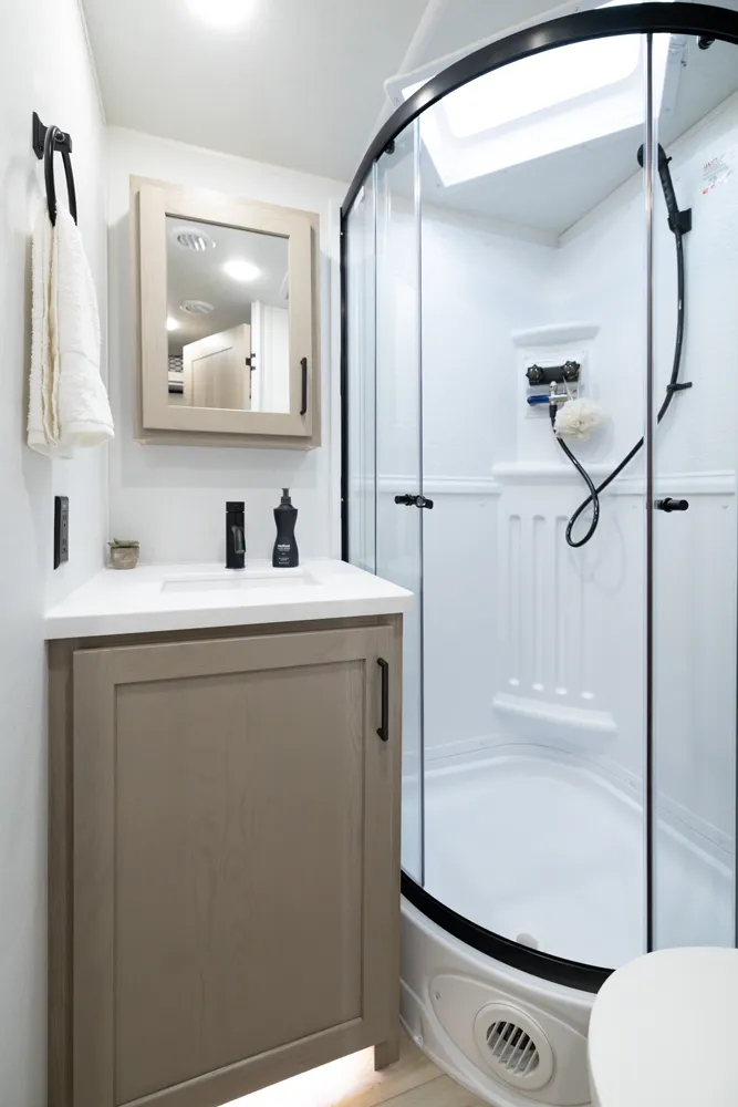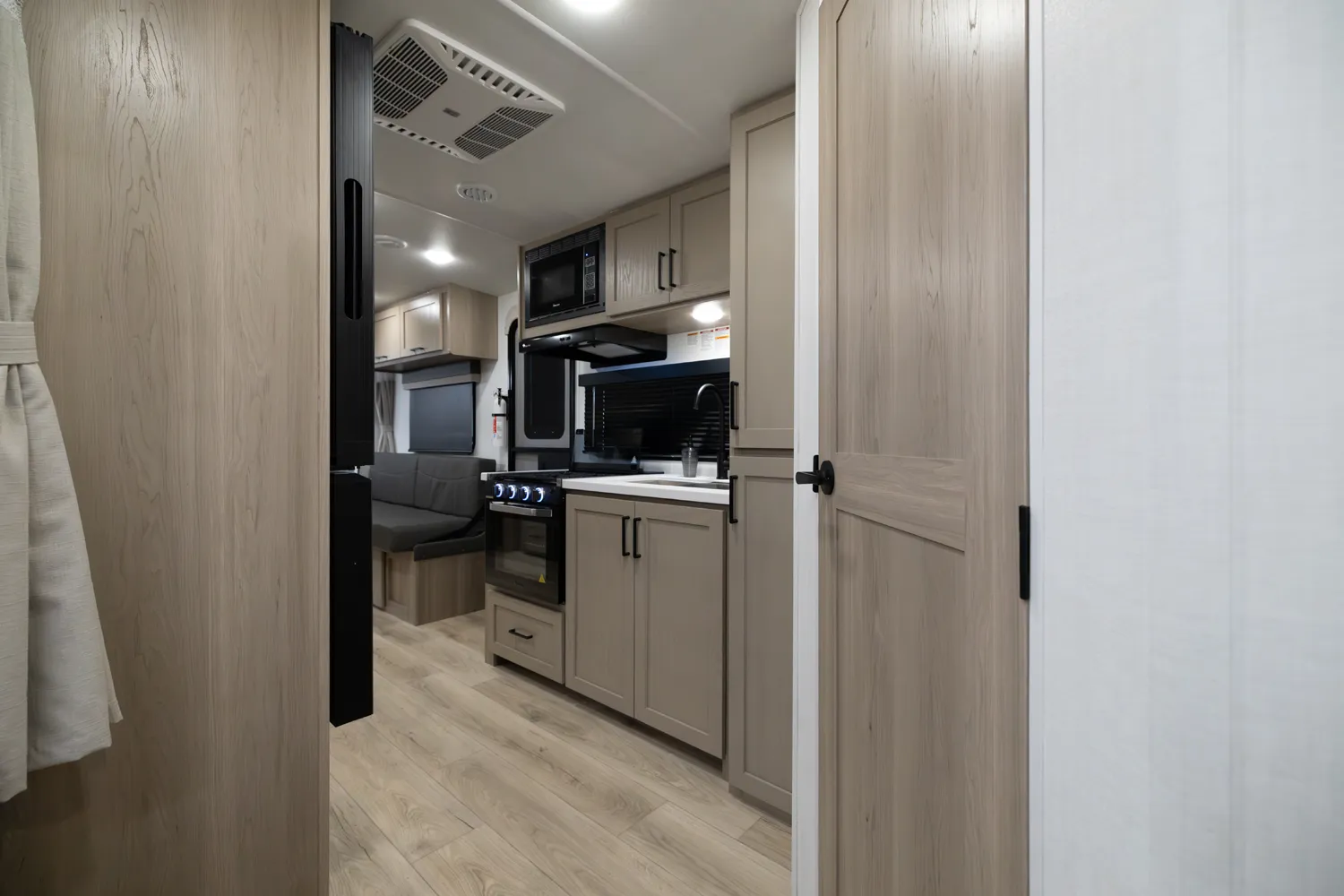 This incredibly popular floor plan has three bed expendables and one slide out featuring a large U-Shaped Dinette. All three expandable beds are residential Queen 60 x 80 beds. There is also sleeping on the 44 x 85 U-Shaped dinette and on the 67” flip out sofa. With the potential to sleep 10 people in a coach that weighs just over 5,000lb, this is a truly unique floor plan.