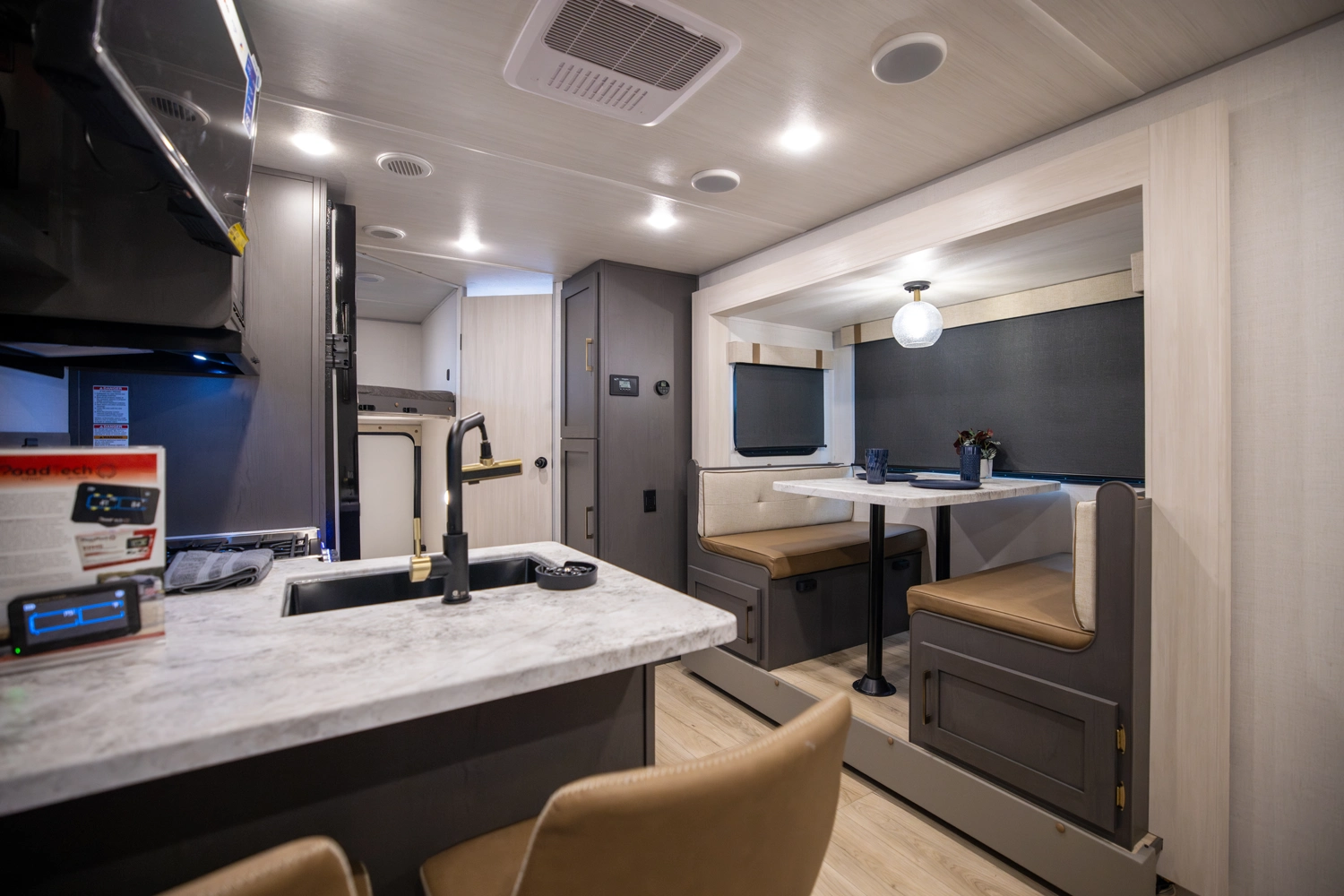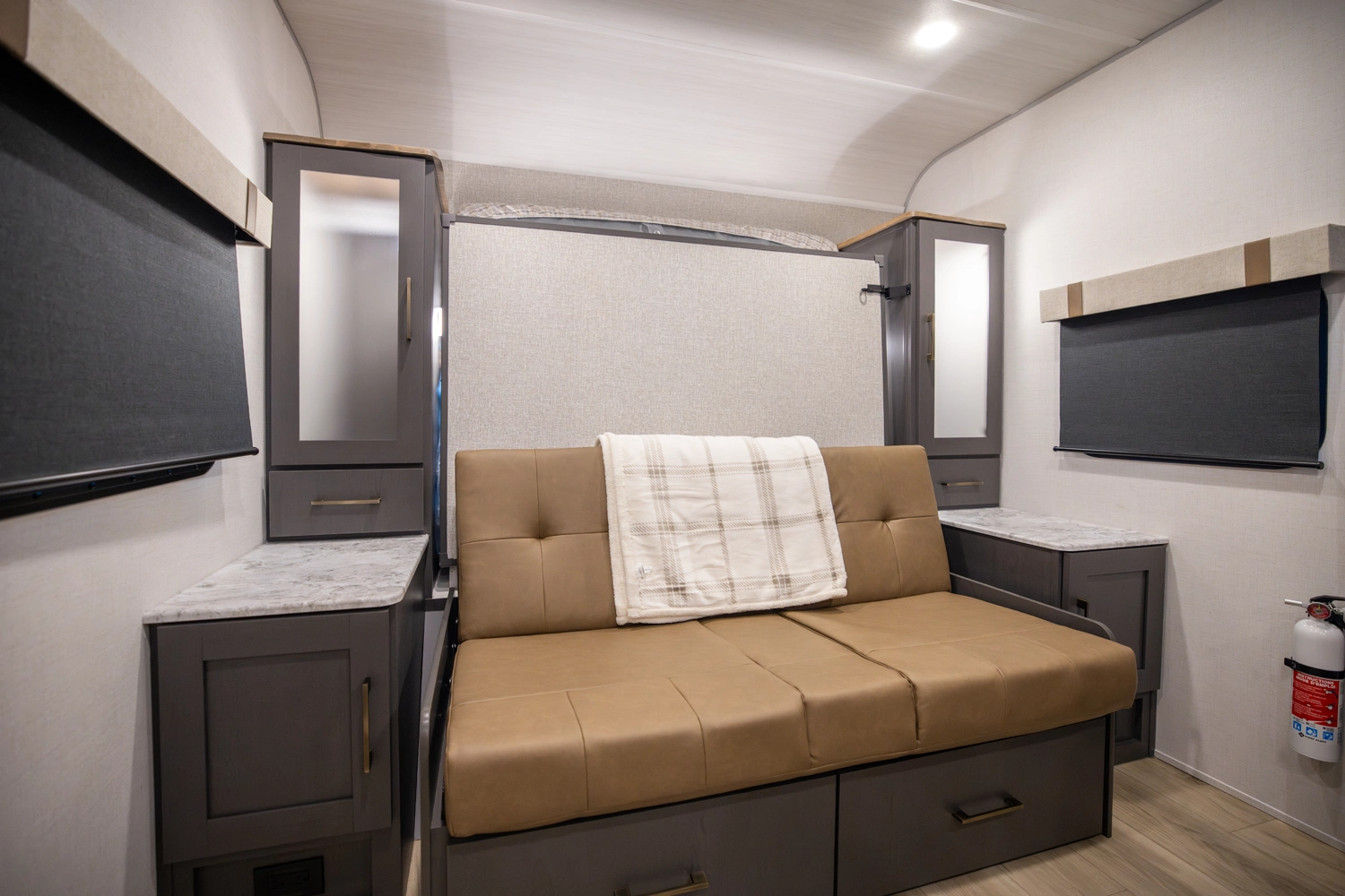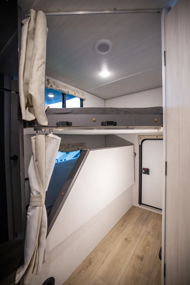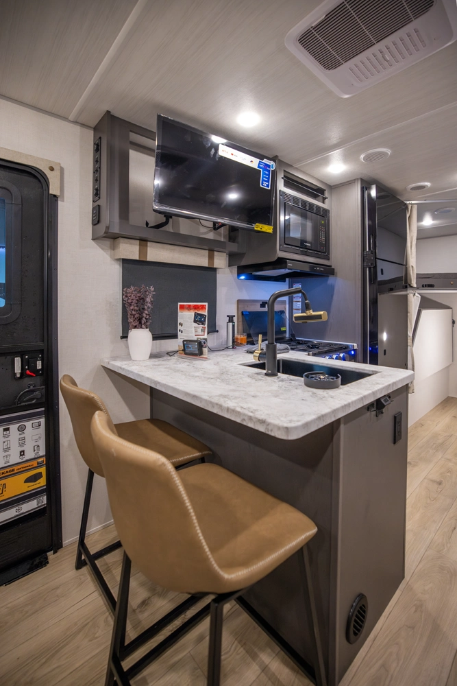 The 23MBH is a spacious, family-friendly travel trailer that combines comfort and versatility. A front Murphy bed converts to a sofa for added living space, while rear double bunks provide room for guests or kids. The slide-out dinette expands the interior, and the full kitchen—with microwave, air fryer, and pantry—makes meals easy. A full bath adds comfort, and exteriors features like an enclosed underbelly and 16' awnings keep you ready for adventure.