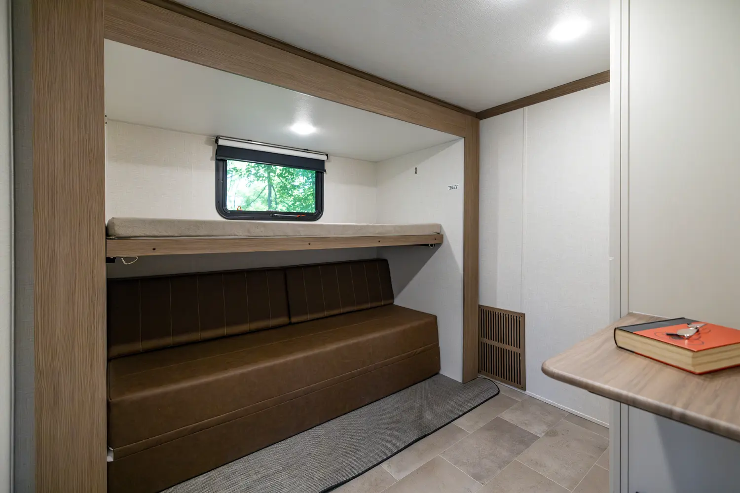 • 110 Outlet & 12V Charging Ports Beside Bed