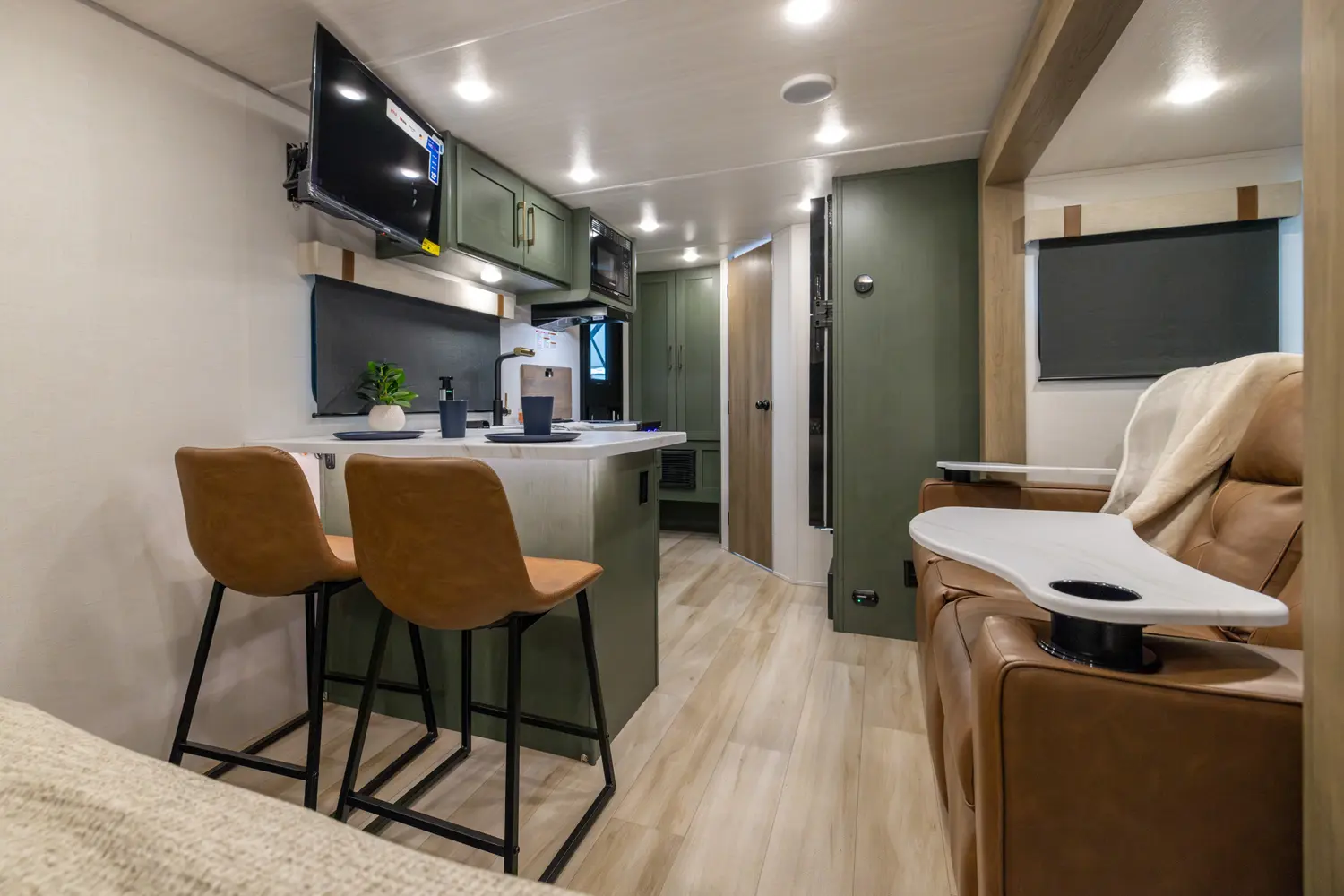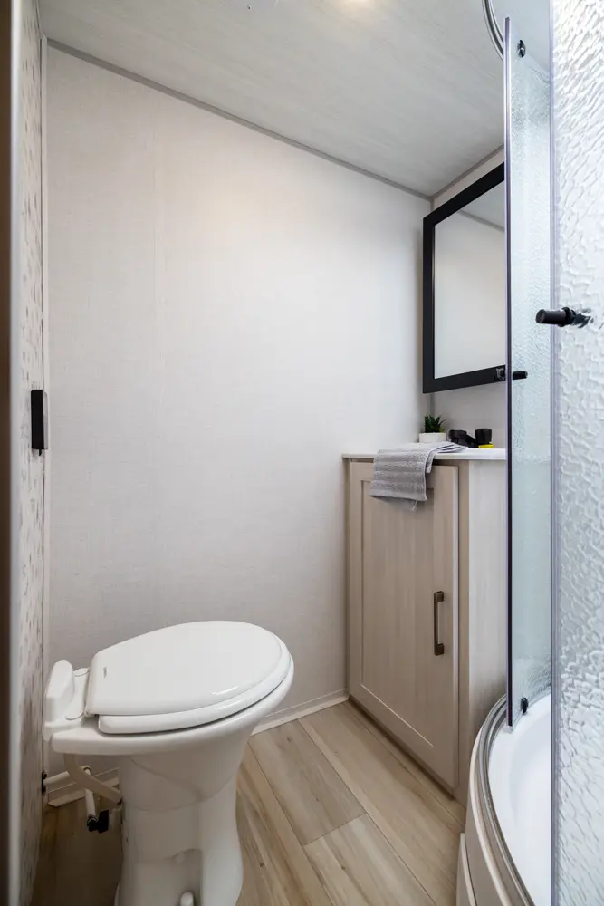 The NB19.6 is a well-designed travel trailer combining comfort and functionality. A mid-living slide-out sofa faces a fully equipped kitchen, while a front queen bed with storage and a rear full bath add convenience. Outside, an exterior kitchen and 16' awning extend living space for outdoor enjoyment. Lightweight and feature-packed, the NB19.6 delivers modern comfort and efficiency in a tow-friendly package.