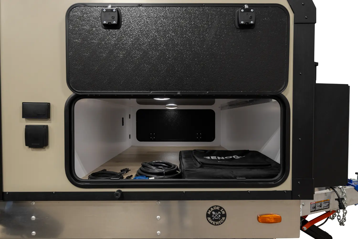 Bringing your mother-in-law on camping adventures is easier than ever with this floorplan! It features a full-size queen, 2 bunks, and a 4-person dinette that converts into an extra bed, ensuring comfortable sleeping for your family. The oversized passthrough storage area and 24 cabinets provide ample space for all your belongings. With the robust solar system, you can go off-grid and operate all trailer components.