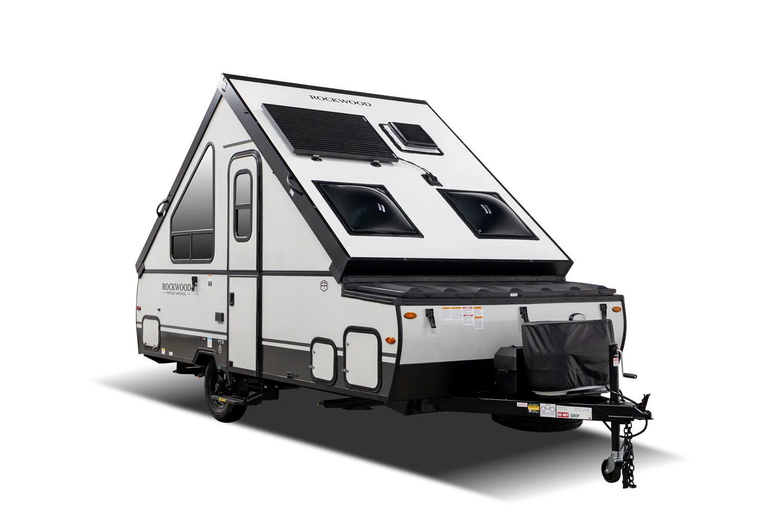 The A122S is exactly like the A122 with a large storage area on the front with all the comfort features and sets up into a firm structure in just minutes. The large window on the front side gives the dinette plenty of seating for four. If you're looking for a small A-frame camper with tons of storage, this is the camper for you.