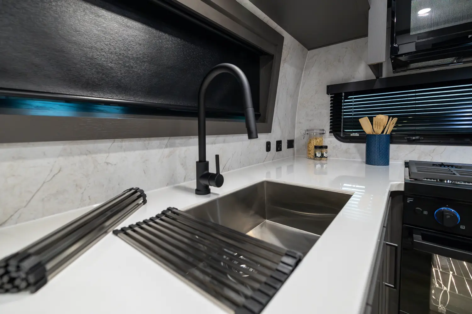 • Power Awning w/ Adjustable Rain Dump & LED Lighting