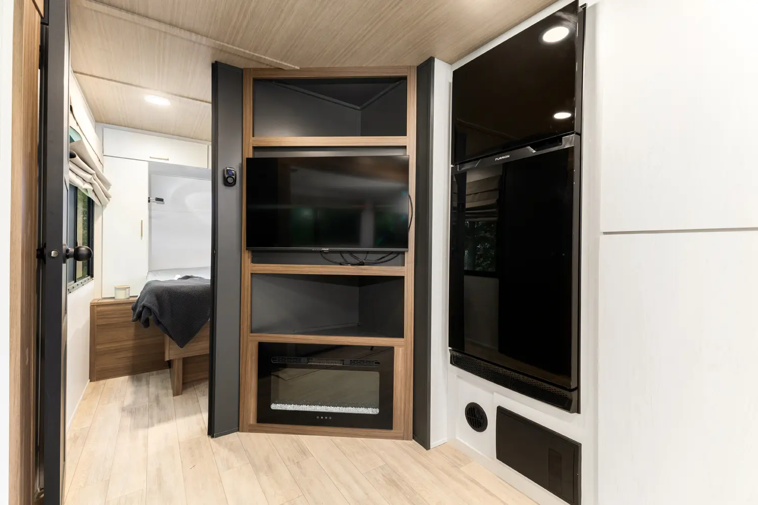 • True Flush Floor Slideouts with Fabric-Backed Shaw Linoleum