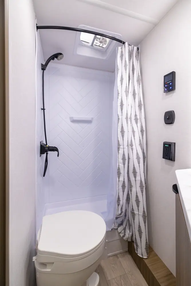• Large 36x24 Shower Pan w/ Shower Surround + Waterproof Retractable Shower Door (No Curtain)