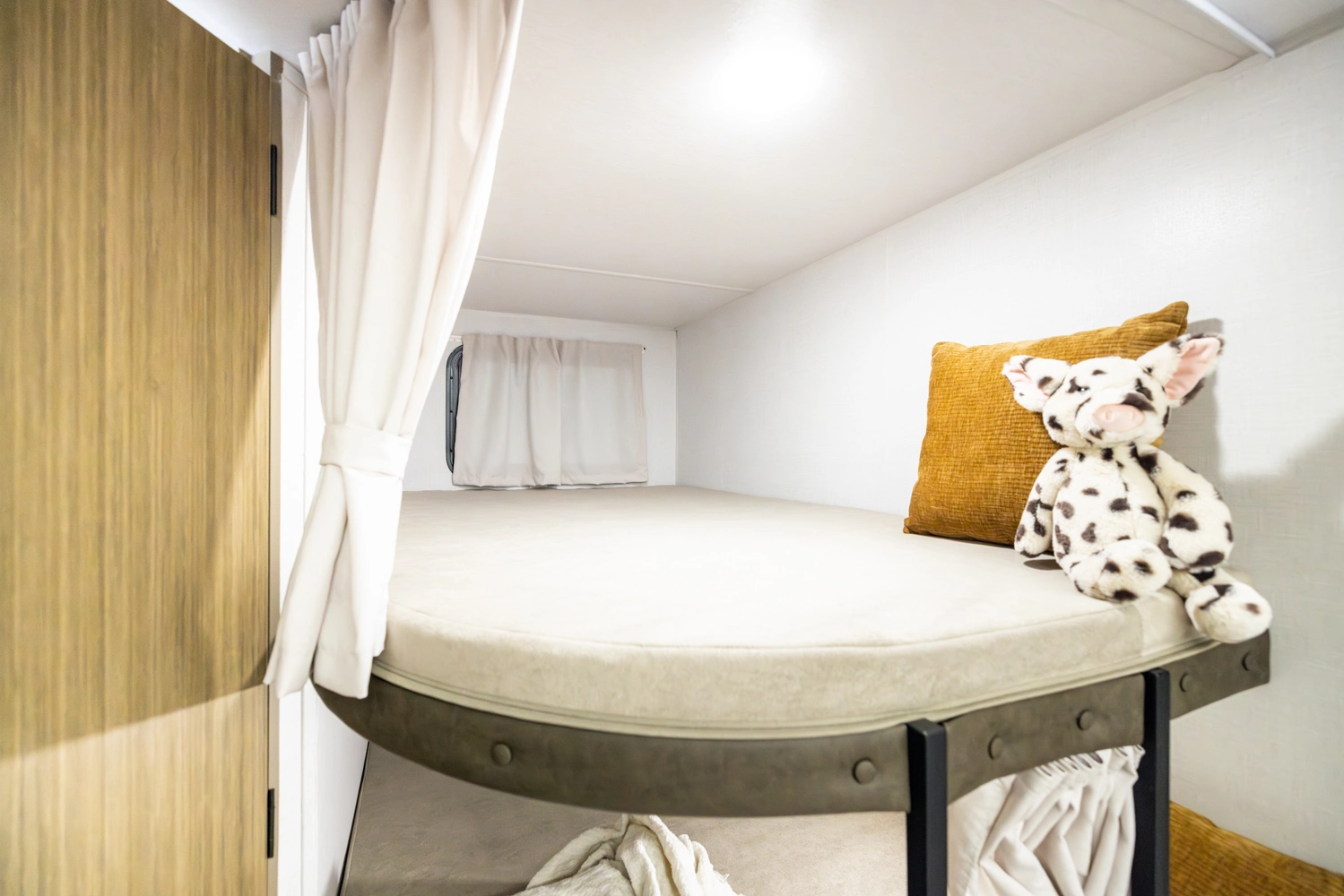 The 26DBUD is the perfect family travel trailer, with double bunks at one end and a queen bedroom at the other. You also get a fireplace (heater), full kitchen with glass-fronted cabinetry and large pantry, a U-dinette, and the customizable Versa-Lounge with Stow N Go Storage.